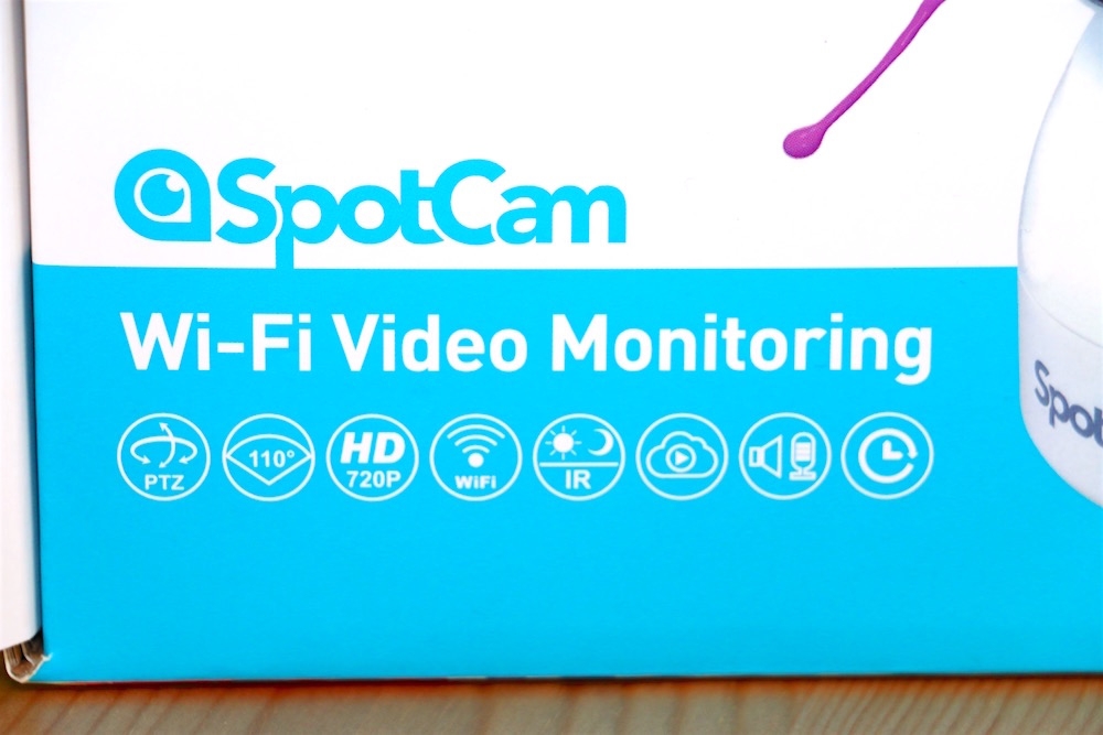 功能方面看盒子上這些小圖標就知道有多強大了!除了 SpotCam 以往厲害的 HD 720P 高清解析度的影像、110 度廣角、無線 WiFi 功能、紅外線夜視、雲端監控以及雙向語音…等功能之外,這款 SpotCam HD Eva 最重要的就是它也是「PTZ 攝影機」!