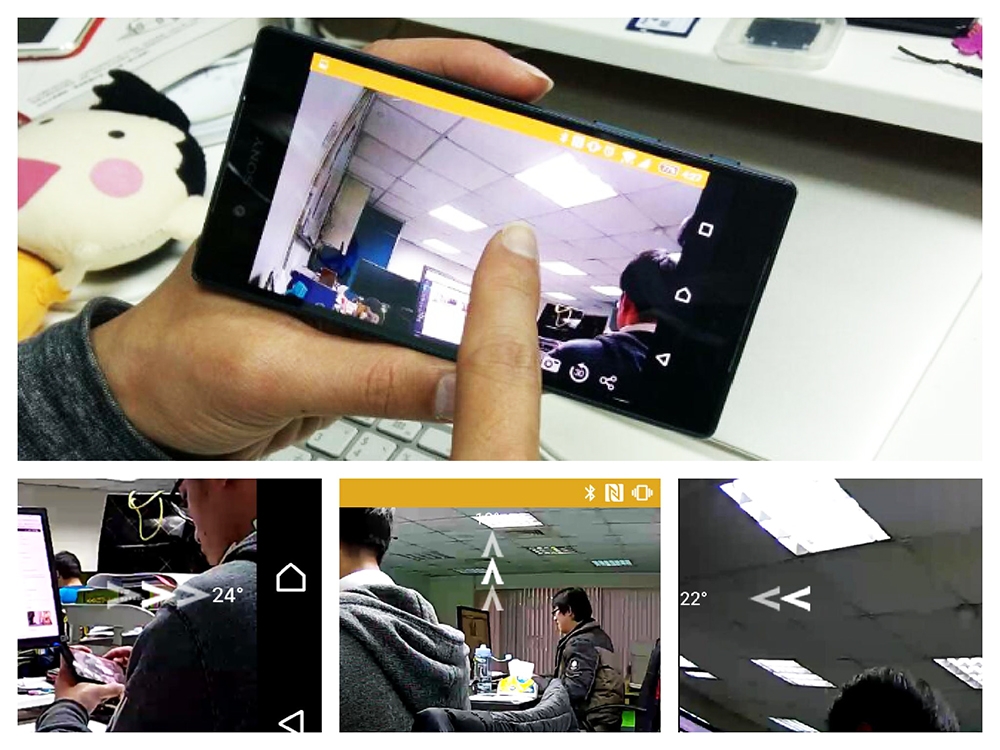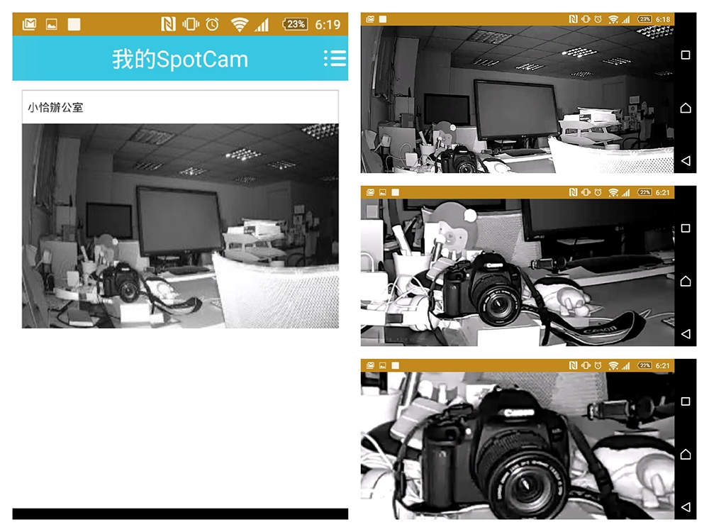 用手指滑動畫面,就可以得到不同角度的視角,SpotCam HD Eva 也會跟著指令而轉動,有點像在操作 Google map 街景服務的感覺,好厲害!