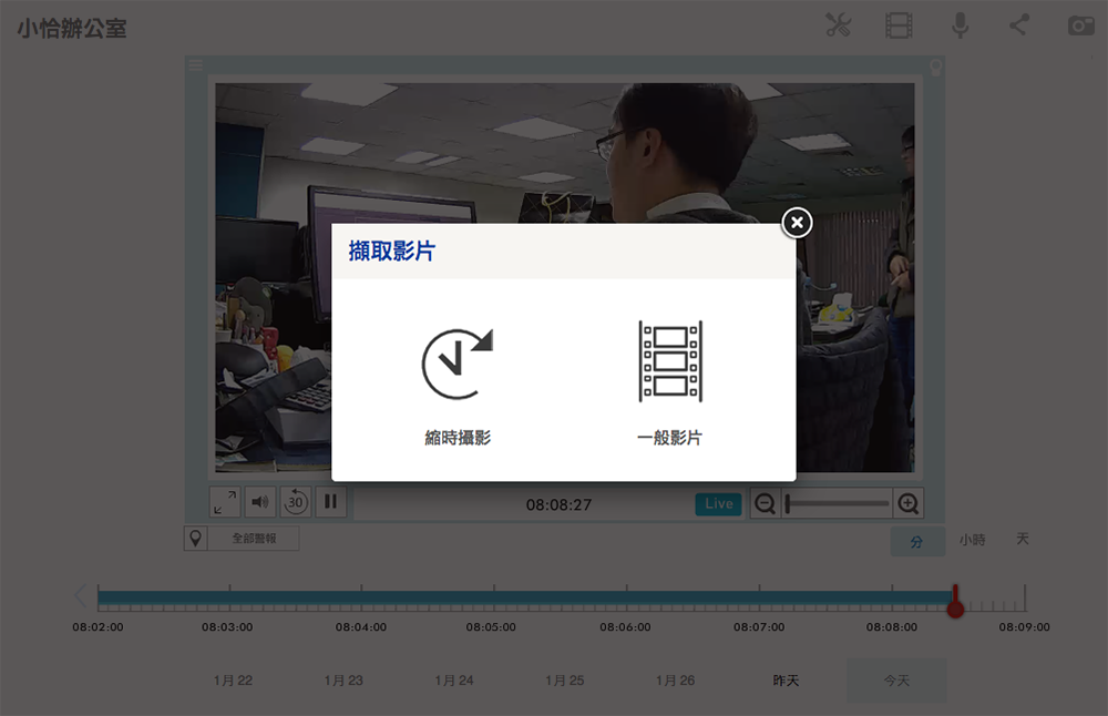 把我們可以把雲端的免費錄影影像擷取做「分享」的動作,或是在擷取過程中選擇把影像做成「縮時攝影」來處理,這些功能都還滿實用的。