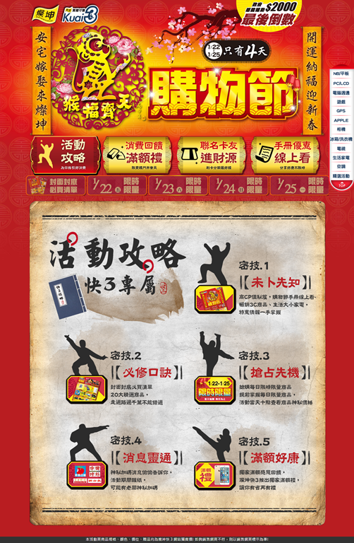 以上是燦坤猴福齊天購物節的優質商品精選推薦!更多詳細內容以及漏網之魚,請大家參考燦坤猴福齊天購物節網路線上 DM ,別忘了!除了實體門市,燦坤網路快 3 賣場也同步進行喔!詳情請依照網站及門市公布為主。最後再次分享猴福齊天購物節活動秘訣!
