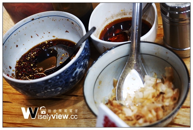 店裡有自取小菜而且項目也不少,但考量點的東西挺多的所以只叫了滷蛋豆干吃,不過味道滿普通的。另外還有調味醬可自取,而他們的辣椒油還滿夠勁的。