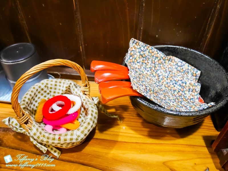所以桌上有準備髮束讓女生可以將頭髮綁起來