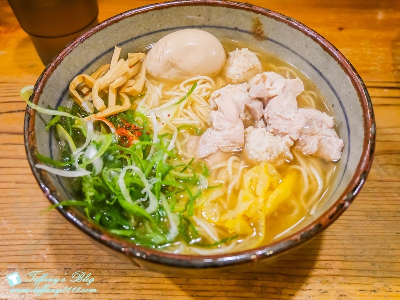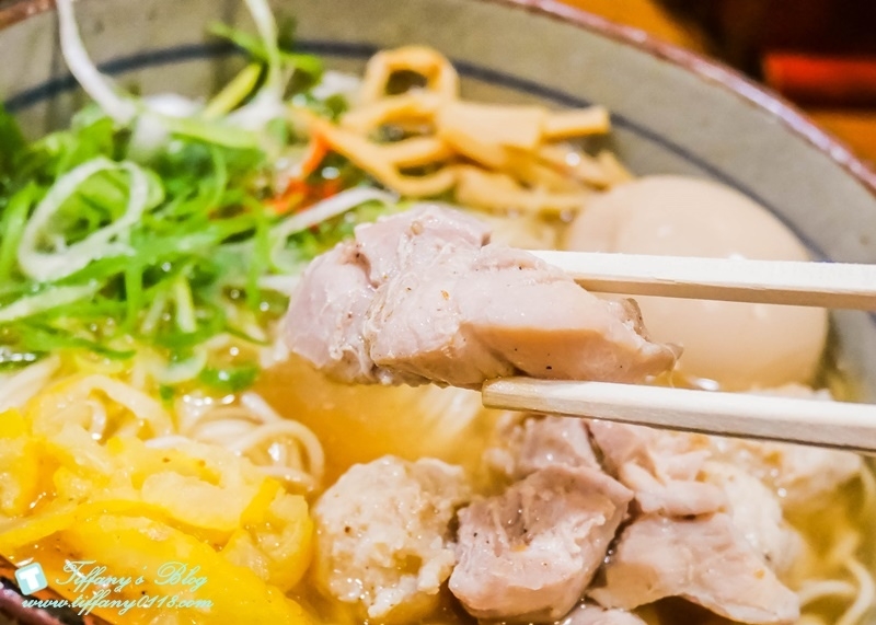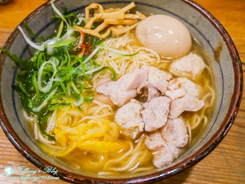 裡面的配料有青蔥~筍片~雞肉~雞肉丸與半熟蛋