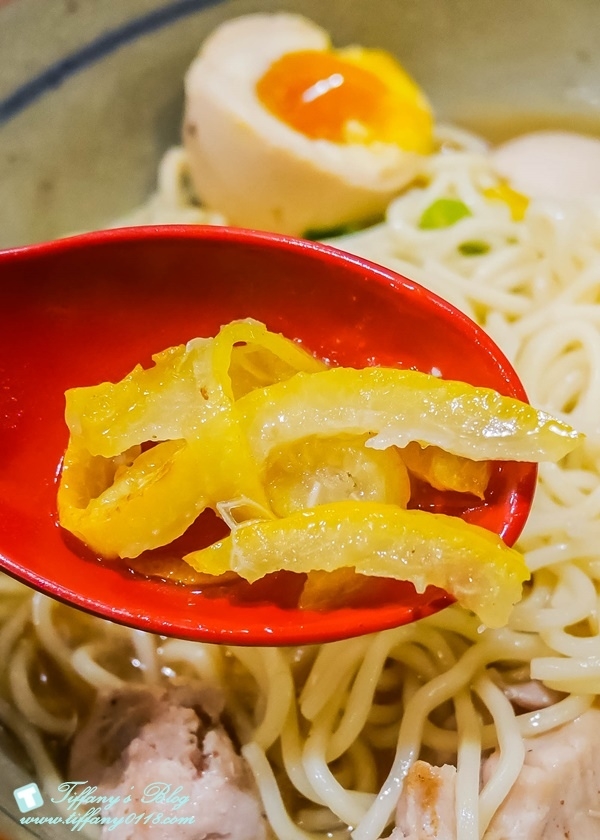 在拉麵跟沾麵中都有加入柚子皮絲