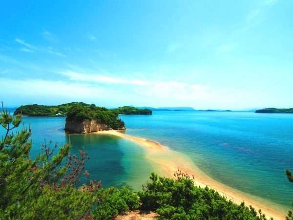 位於香川縣小豆島的連島小徑,一天內僅會在退潮期間神祕的從海中出現2次,因連接大地與小島間的沙道被大海淹蓋,海水退潮時才會露出,又稱為「連島沙洲現象」。傳說只要戀人在這條「天使之路」正中央牽手,就會相依相攜締結連理。