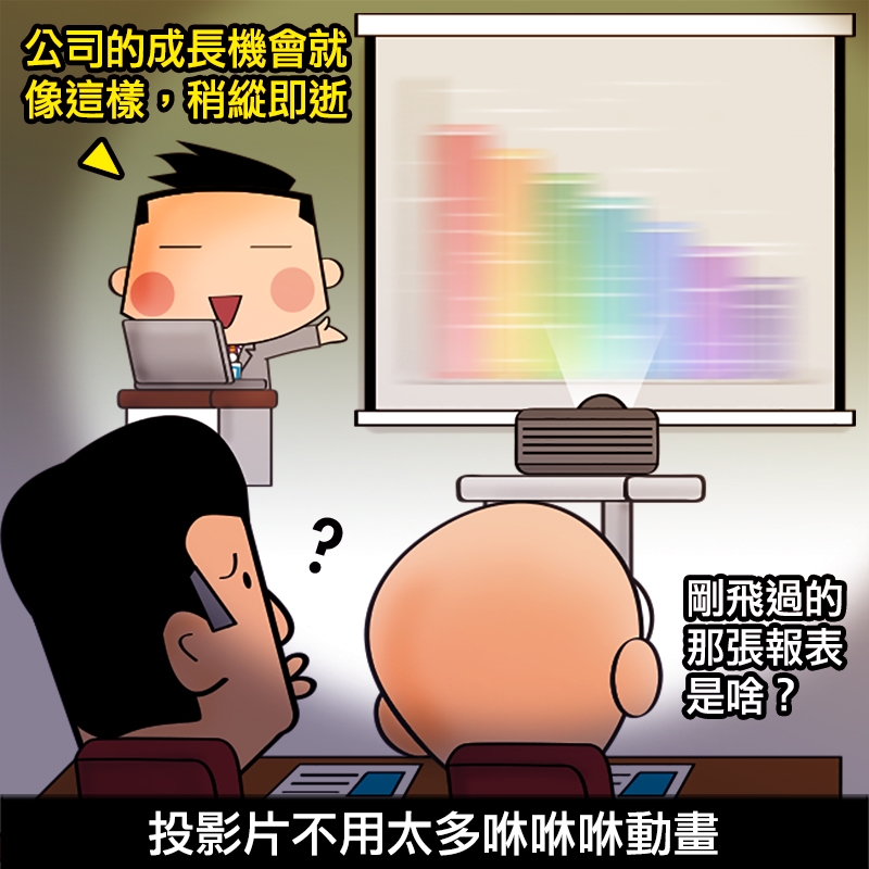 其實這些只是最基本的簡報禮儀,對很多行銷公司或品牌產品端相關的公司,要做好簡報真的不是這麼容易的事情,他們甚至請外面的公司協助設計簡報呢!但對於我們自己公司內部的,能夠把事情重點交代清楚,就很完美囉!