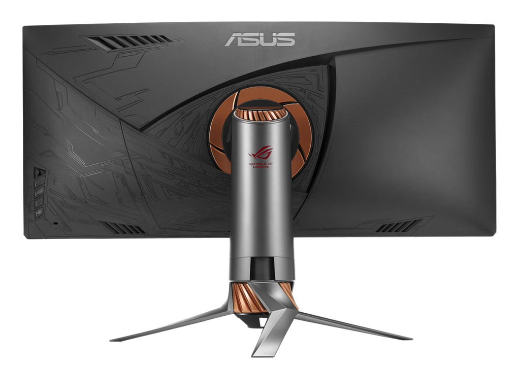 奪下2016 CES創新獎及iF產品設計國際大獎的PG348Q採用細緻無邊框設計,並搭配全新的ROG鈦金屬色系裝甲外觀與電漿銅配色,且腳座內建LED燈光效果,開啟即可投射出銳利的ROG電競之眼,為遊戲增添氣氛。此外PG348Q具備100Hz的更新率及NVIDIA® G-SYNC™技術,能為使用者帶來不可思議的順暢快速遊戲體驗。