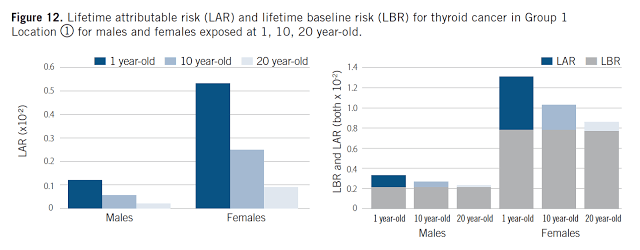 然而林田團隊2013年的結果並沒有在津田團隊2015年的論文被討論(雖然在引言有提及),這是非常奇怪的一件事,似乎是為了想要「突顯」高比例的甲狀腺癌現象。此外,日本人的終身罹患甲狀腺癌的風險約為0.5%(參考5),津田團隊發表的0.037%也符合預期地低於這個數值,換言之,實際上我們在所有相關報告中並沒有看到任何超出現有知識的東西,而津田團隊所謂的「30倍」很有可能是「搞錯了」。