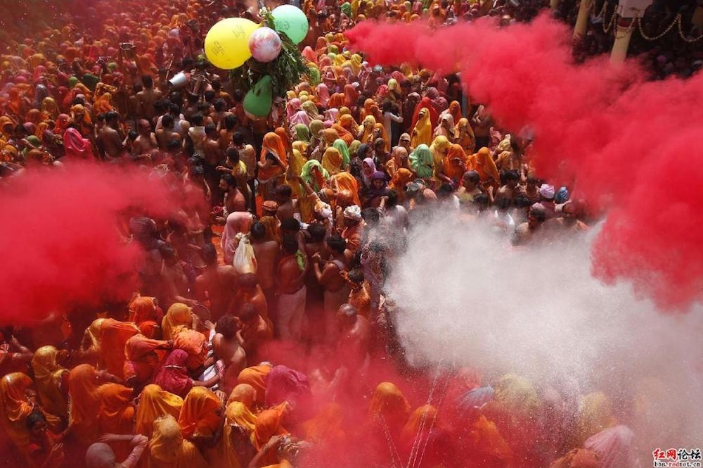 今天是印度三大節慶之一的灑紅節,當這天到來時,印度人會準備五顏六色的顏料及粉末向彼此身上潑灑,像是打雪仗一樣的將顏料及粉末灑向周遭的人們,就連外國人也都不放過,讓所有的人、寵物、街道都變成彩色的,並在活動結束後相互擁抱,高喊 「Happy Holi!」。