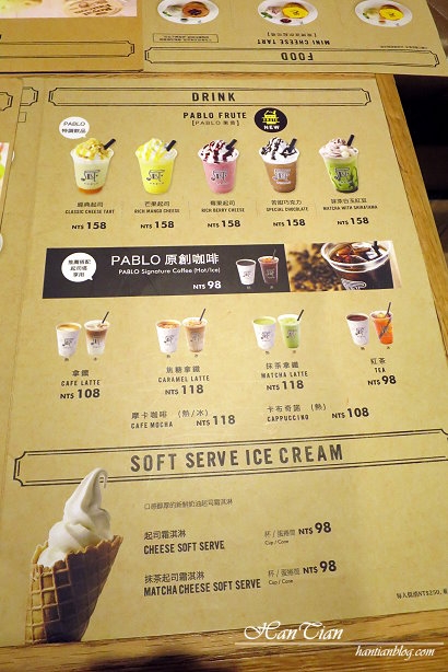 來看看內用的菜單,PABLO 起司塔的內用菜單和外用菜單不太一樣