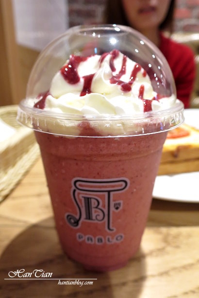 喝起來有點像奶昔的口感,還可以喝到莓果顆粒