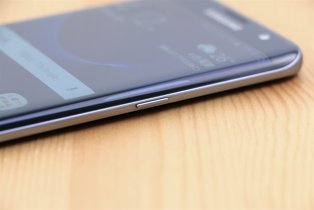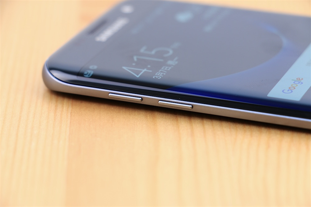 音量鍵配置在機身左上放位置,由於 Galaxy S7 edge 正面及背面皆採用曲面玻璃,所以邊框變得比 Galaxy S6 edge 還要細緻,音量鍵的按壓手感也變得更加明顯,加上上下分離式設計,可以確保不會按錯音量鍵。