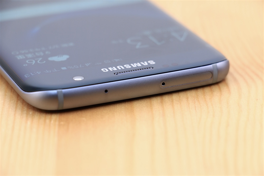 Galaxy S7 edge 機頂上方除了降噪用的第二麥克風之外,一旁還有 SIM 卡與 microSD 記憶卡槽。值得一提的是,SIM 卡槽與 microSD 卡槽支援熱插拔功能,不需將手機關機就能直接更換 SIM 卡或是 microSD 卡,讓使用可以更加方便。