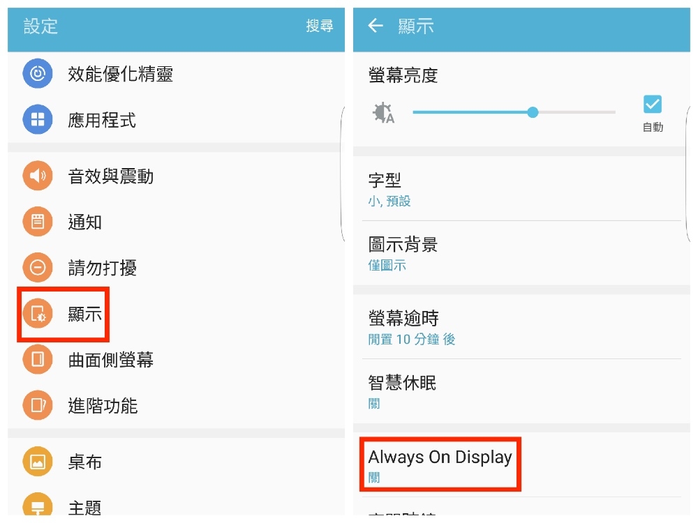 Always On Display 的開啟步驟相當簡單,只需進入設定中找到顯示選項,點入後就能看到 Always On Display 的選項。