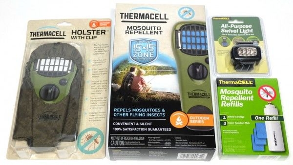 Thermacell 手持驅蚊器含本體、使用丁烷墨盒燃料的燃料棒(持續時間長達12小時)、3片驅蚊墊(每次持續時間長達4小時)一組 25 美金。皮套夾、皮套和掛飾扣、旋轉燈等配件單獨出售,能有效地驅除蚊子、黑蠅、和其他昆蟲的叮咬,開關自驅蚊器上的旋鈕旋轉打開。