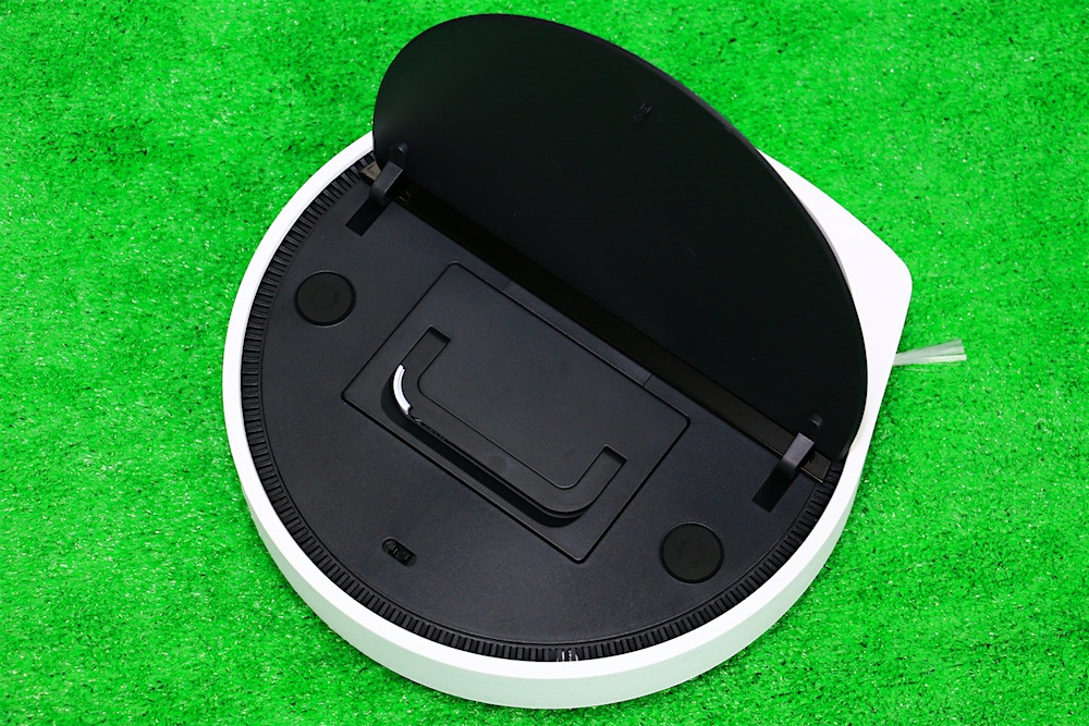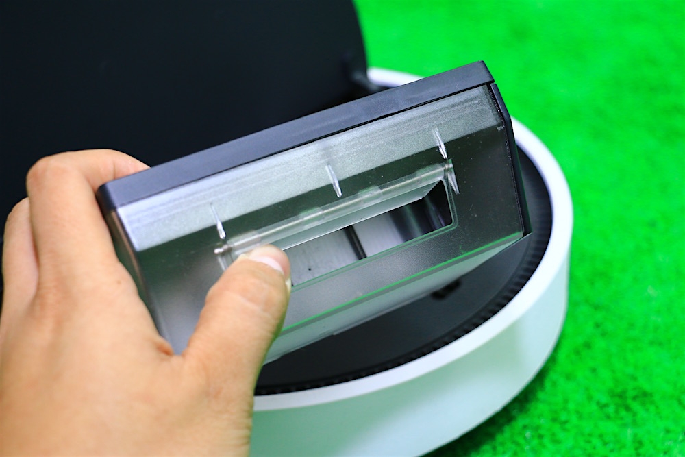 我們都知道,集塵盒對掃地機器人來說相當重要,位置設計得好就能讓使用者輕鬆的將垃圾拿去倒掉,若位置設計的不好、或是不好取出,可能就會時常發生垃圾忘記清除的狀況。而智小兔的集塵盒隱藏在後方黑色護蓋中,不僅讓外觀更加美觀之外,搭配集塵盒上的提把設計,也讓清除灰塵變得更簡單。