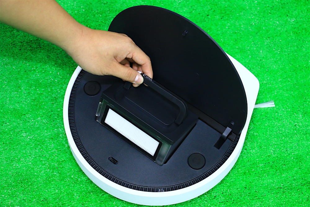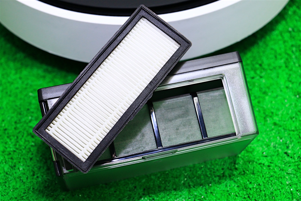 為了避免吸入集塵盒的灰塵有再次吹出的疑慮,智小兔集塵盒後方的排氣口設有兩道濾網,透過第一層孔洞較大的濾網來過濾毛髮、大型灰塵,剩下的小灰塵再藉由第二層過 HEPA 濾網來做處理,降低吹出的空氣帶有大量灰塵及 PM 2.5 的狀況發生。此外,必須提醒的是,第一層濾網可以透過清洗的方式來保持乾淨,但第二層的 HEPA 濾網屬於耗材,使用者僅能透過更換的方式來維持過濾品質。