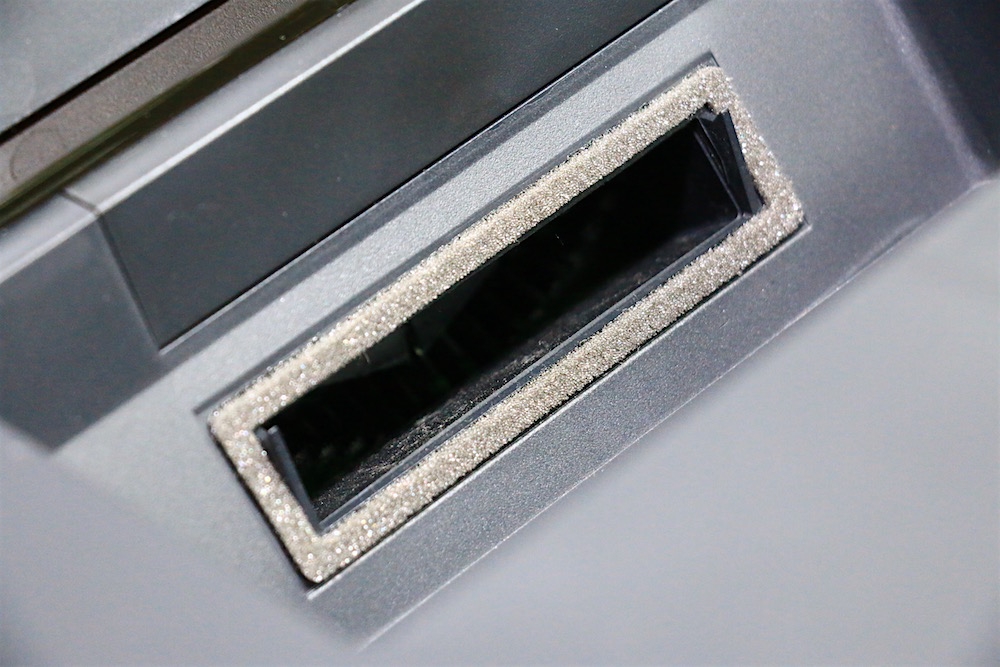 智小兔處處充滿貼心設計,為了避免由滾輪刷吸取進集塵盒的灰塵跑出,在集塵盒與滾輪刷連結處周圍覆蓋了一層厚實的海綿。