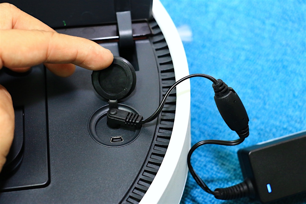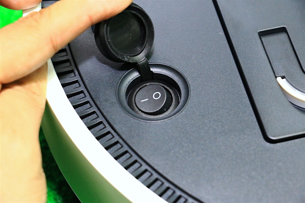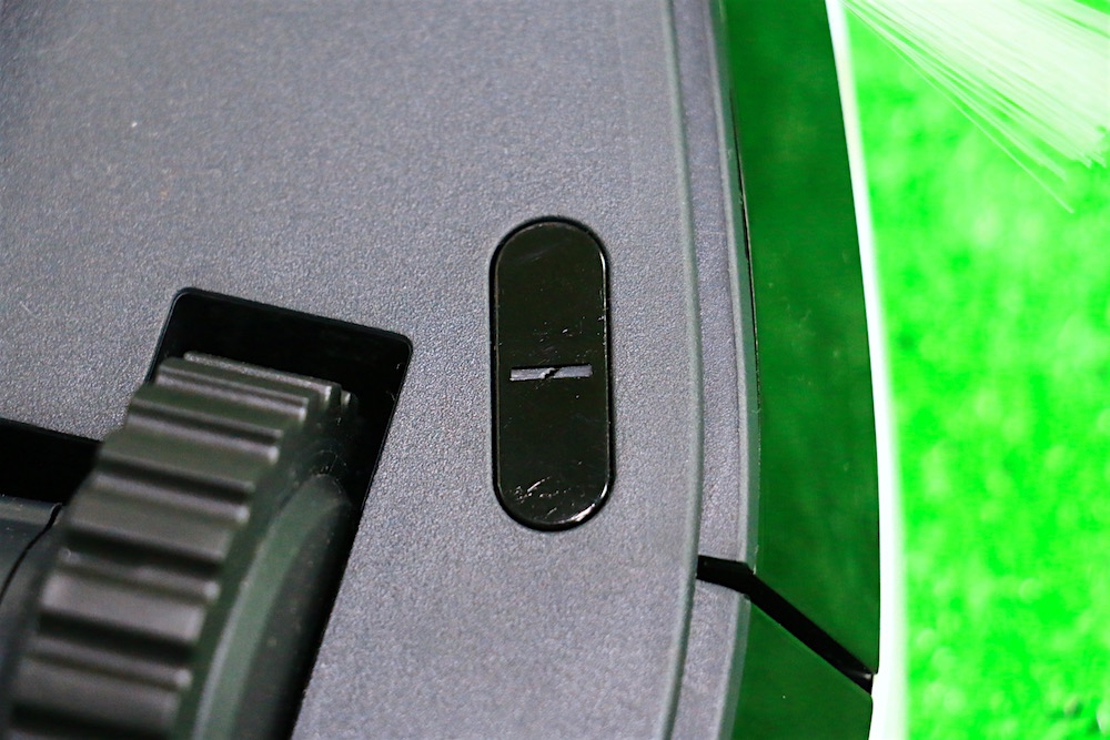 智小兔的電源開關設置在機身中,若要將智小兔完全斷電關機,必須透過這個電源開關來完全斷電。而電源開關外層設有矽膠防塵蓋,搭配機身上的黑色護蓋,除了可以隱藏開啟後就鮮少關閉的電源開關之外,也能降低電源開關被毛髮、灰塵纏上,造成損壞的風險。