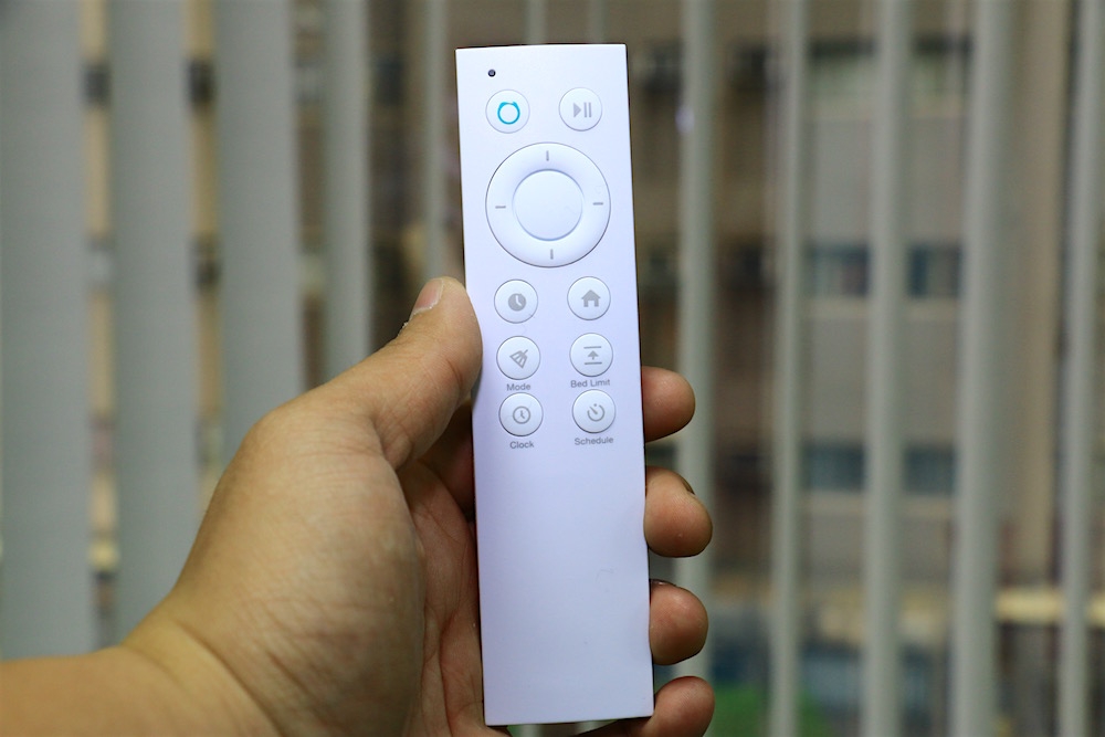 智小兔的遙控器具備多種功能,除了左上的開關機、右上的執行與暫停清掃任務之外,中間還有一個手動操作的四向鍵及確認鍵,下方則是時間設定、回家、清掃模式、高度限制設定、單次清掃時間及清掃定時。