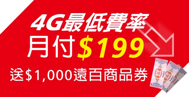 遠傳「4G超低199單門號方案」,特別針對無須更換手機、上網用量低,希望享有輕量化資費的用戶所設計,每月只要$199即可享有$100通話費+1.2G上網用量。每天不到$7,輕鬆講電話、滑手機,超值更easy!