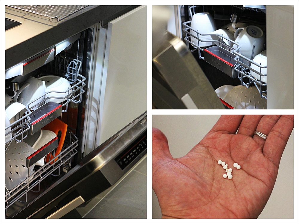 現場除了剛剛介紹的嵌入式廚房家電外,其實還有他們全新一代的「沸石洗碗機」,現場有看到獨立式和這種半嵌入式的,家裡好想要有一套唷!現場專業人員還給我們看看「沸石」是什麼樣子,由於沸石有均勻的孔洞,所以也有高表面積的特性,以及水熱穩定性及耐酸鹼之特性,很適合作為吸附劑,設計在洗碗機裡是再適合不過了!