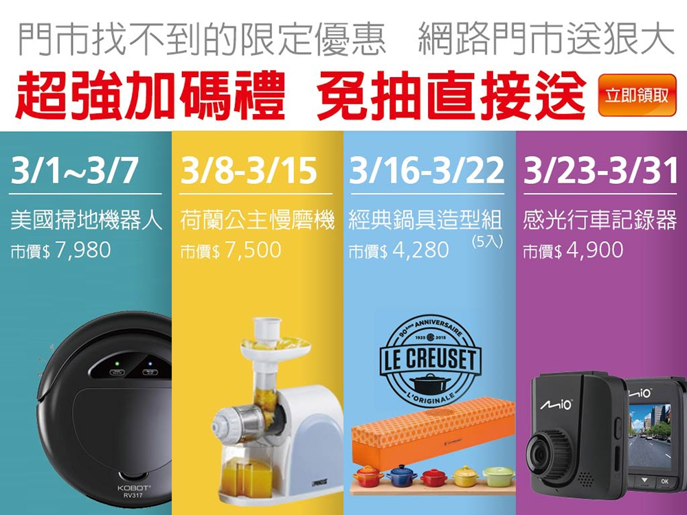 遠傳網路門市3月份加碼活動-週週免抽直接送掃地機器人等超強加碼禮,響應高CP值等各方好評,4月份活動再延長!僅此一次,別再錯過囉!