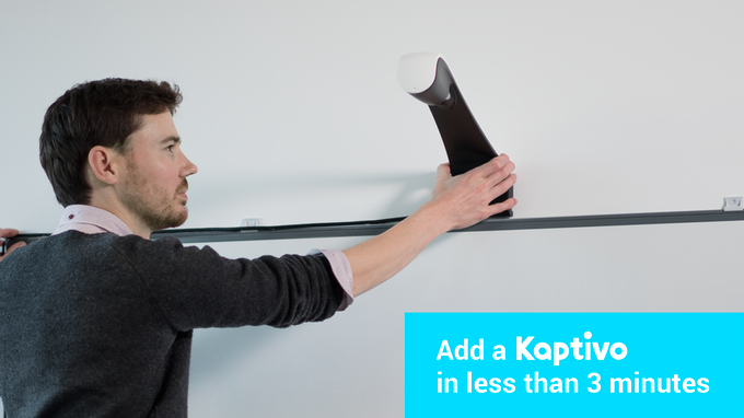 將 Kaptivo 安裝在白板上方,安裝簡單,就像是掛畫框一樣!有明確的安裝教學,不用三分鐘即可完成。
