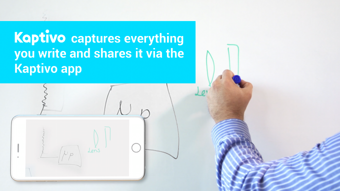Kaptivo 是一款數位攝影機,有無線網路與藍牙連結功能,能將使用者在白板上寫的一切資訊內容分享給在遠端的同事,甚至可以倒退白板上的內容,重新理解、多看幾次了解整個會議的內容發展。