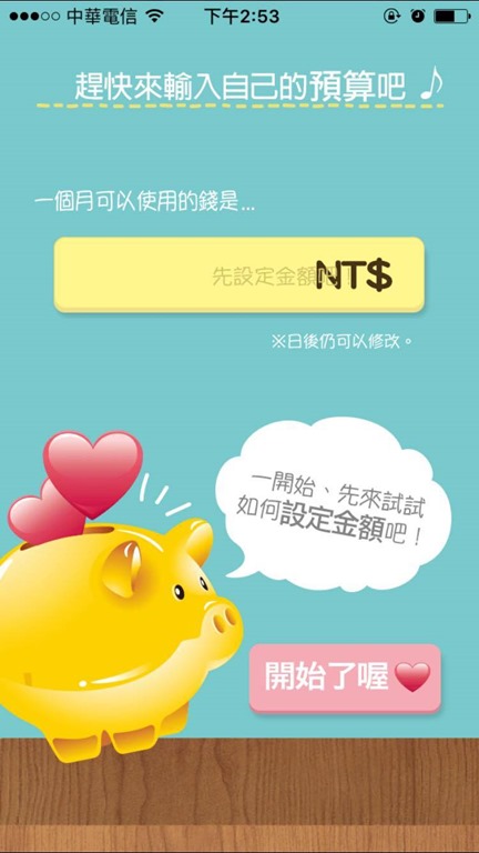 直接至 App store 搜尋下載「PochiReco」,打開畫面後可以先設定自己一個月只能花多少錢的金額。這個金額之後還可以更改,接著點開始了喔!就會進到以下畫面。直接選擇今天的花費,伙食費就點選伙食費,然後輸入金額,如果需要特別註明自己吃了哪一間店的食物,也可以在 Memo 中記錄,完成就會自動計算加入資料中。