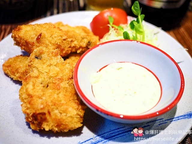 炸廣島牡蠣搭配塔塔醬,大顆夠味,配酒剛好!