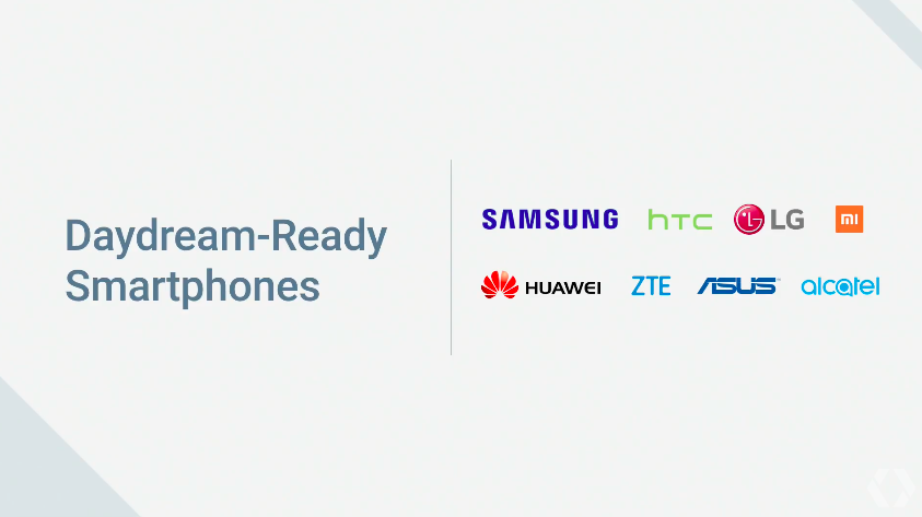 Daydream 除了頭戴式裝置以外,還有一款讓操作者可以順暢操作遊戲動作的遙控器。而更振奮人心的還有 Daydream 並不侷限於 Nexus 系列手機,會中也公佈今年秋天首波支援的手機廠牌,包括有 Samsung、HTC、LG、小米、華為、ZTE、ASUS 與 Alcatel 八個廠牌。(不得不說很意外的沒有 Sony,而且竟然有四間是對岸的手機品牌! )