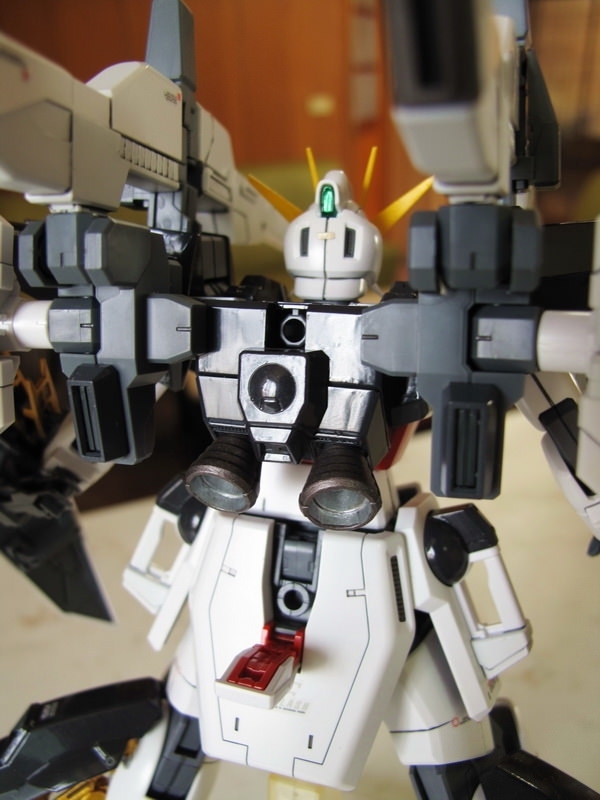 結構上,當然延用了GX的骨架與反射板設計,在可動範圍能有好表現自然不在話下,不過掛了超大裝備的上半身實在太重,腰以及雙腳的保持力會感覺不太夠,製作的時候要記得塞張小紙片加強;分件則是同樣等級的精采,該有的顏色–甚至胸部的機砲、膝部的小三角都獨立分件了,讓組裝上色都相當的便利。