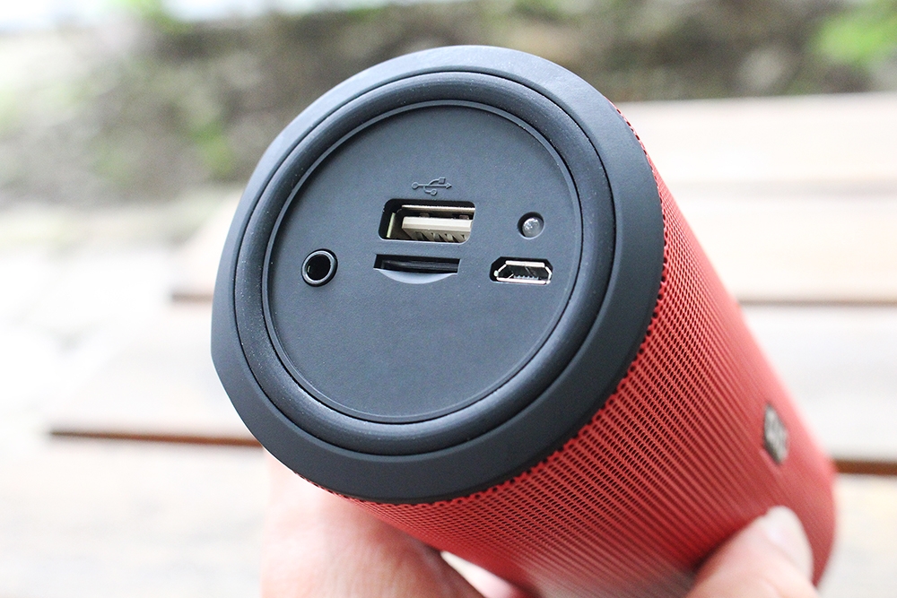 底部的部份則是輸入介面,其中有 Micro SD 卡插槽、AUX 音源孔、USB 插槽、指示燈以及 Micro USB 充電接口,外圍的部份貼心設計了防滑墊,放在桌面上的時候就不會滑來滑去了。