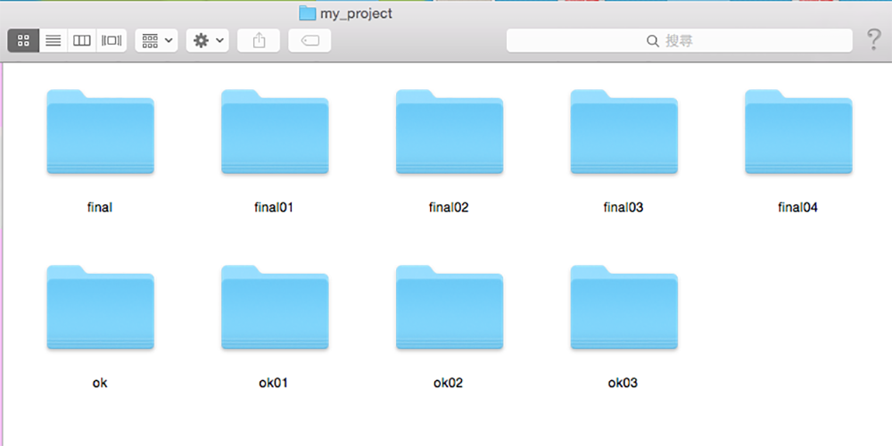 不知道你手邊有沒有一個這樣的 Project 資料夾,原以為專案已經告一段落了,連資料夾都設定名稱為「final」了,恐怖的是上頭或客戶又持續地修改…話說後來之所以 final 後面設了兩位數字,主要是判斷可能會修改到 10 次以上,這樣命名方式可以讓他們至少可以修改到 99 次,想想真的有種可悲的感覺(淚)