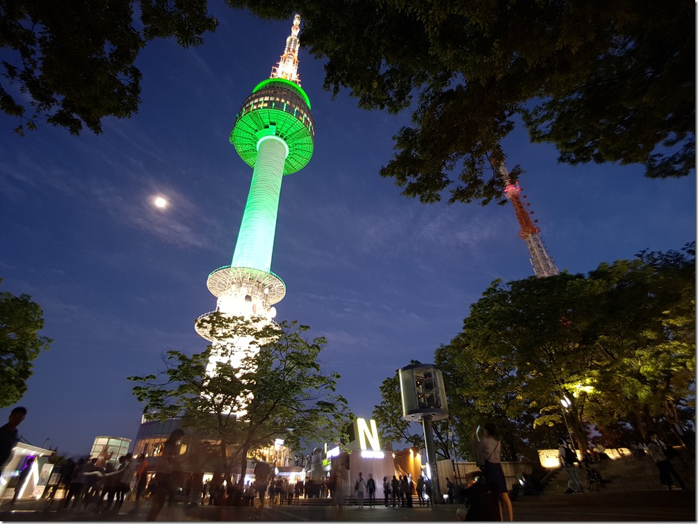 當天在首爾塔上拍攝了許多照片,也都立即分享到我個人的 IG 上,隨即就有朋友問道,首爾塔究竟值不值得上去玩。其實這地方就像是外國人來台北你會推薦他到 101 走走一樣,是個地標概念的景點。這次是從日落前待到完全日落,在南山上欣賞了日景、日落與夜景,其實真的很棒。塔裡面也有很多餐廳,基本上在山上約會是非常合適的。話說,這次在出發前就先帶了 S7 專用的廣角鏡,所以像是這樣高大的地標,也可以輕鬆地拍下全景。