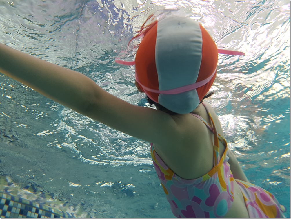 對了,飯店裡還有個室內游泳池,水深差不多 130 公分,只有三個水道。因為女兒們很愛游泳,所以就在幾天中找一小段時間一起游泳。這時候突然感覺到,手機有防水真好,直接把手機拿到水底下就可以拍下女兒游泳的照片,這真是令人開心的事情。