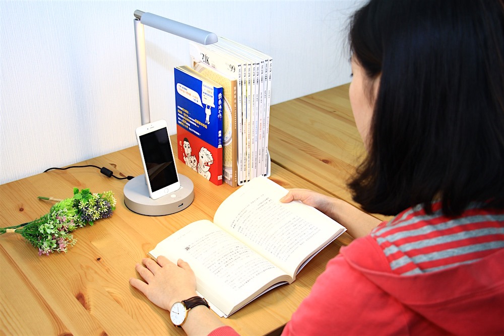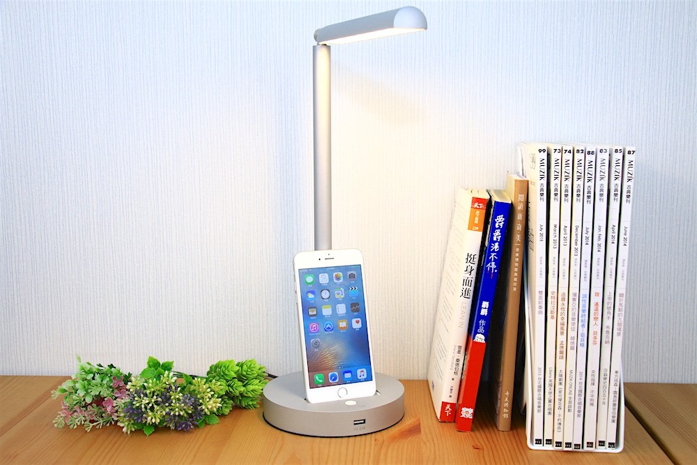 LED 檯燈結合手機充電座,讓使用者們可以擁有充足的光源,可以看書、滑手機,在手機沒電時也能直接放上去充電,實用又省空間!