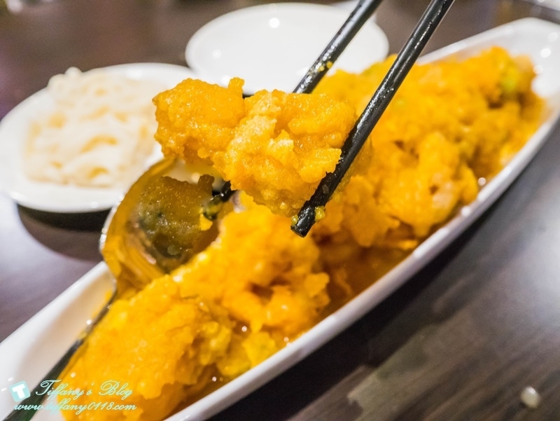 這道也是店內的招牌菜,跟一般我吃過的金沙中卷口味不太一樣,外面的是偏乾然後炸的比較酥脆,大宅門的金沙中卷較為濕潤….