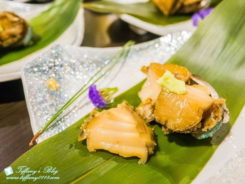上面有一小搓新鮮芥末,可以搭配鮑魚一起吃,更能襯托出鮑魚鮮甜的滋味~重點是鮑魚Q彈的口感真的很棒,也貼心的切成幾小塊方便入口!!