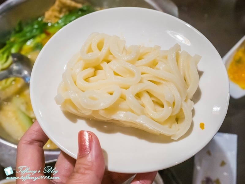 剛才有說乾鍋鴨頭吃完後可以加入高湯跟蔬菜盤一起熬煮變成火鍋,等於另外一種吃法…也有烏龍麵可以再填一下沒吃飽的肚子~