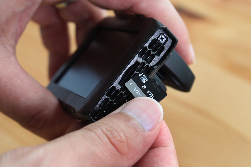 機身右側則是 micro SD 卡插槽,最大可以支援到 128GB!除了能保留更多記錄之外,也可以避免檔案因為容量不足而被附蓋掉。