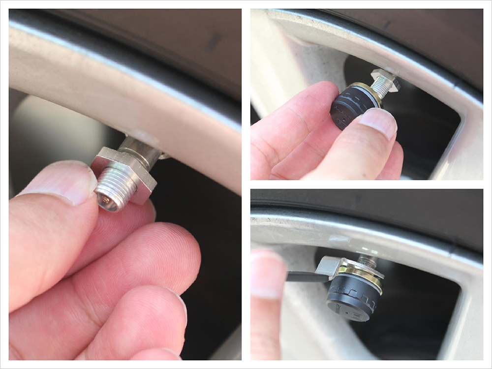 接著利用提供的工具,把四顆感應器裝在輪胎上。