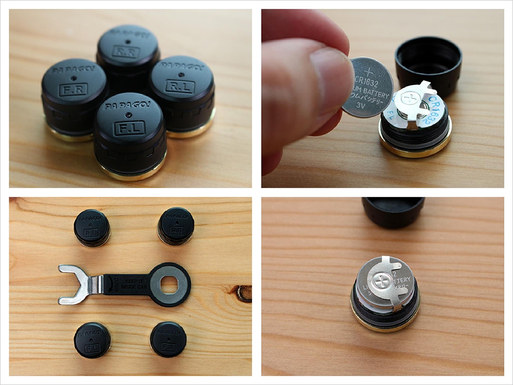 四顆氣嘴感應器打開後安裝預先內附的電池就可以了。