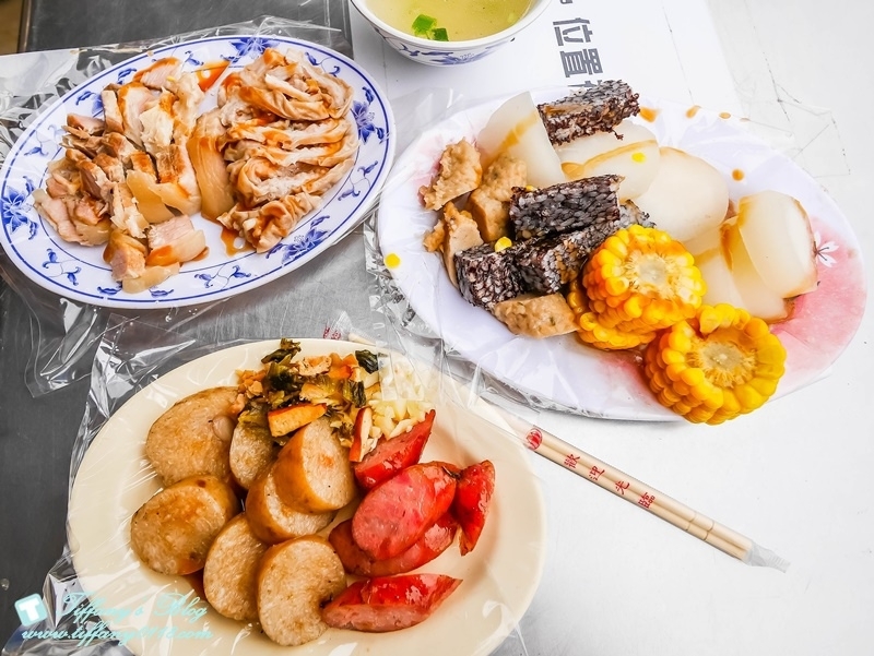 簡單的一份大腸香腸卻有很多配料,酸菜、蒜頭片還有豆干,搭配大腸香腸一起吃口味更加分~~