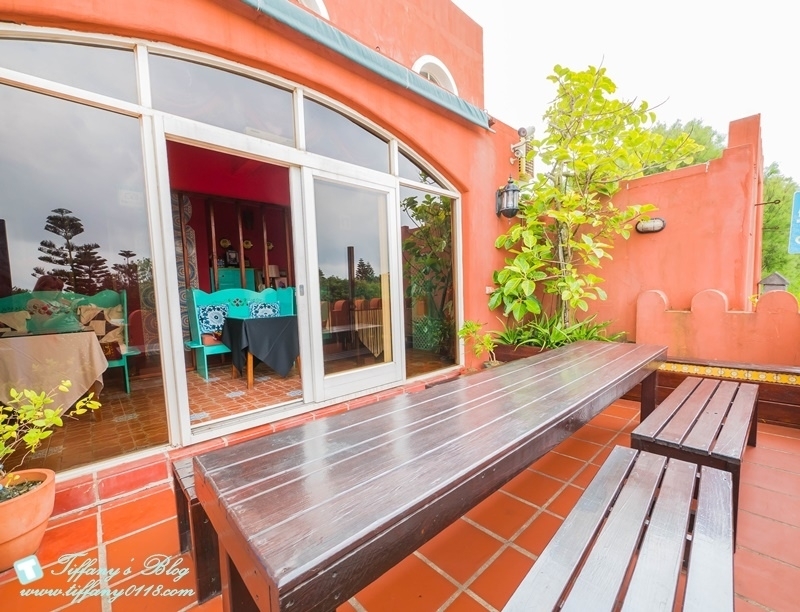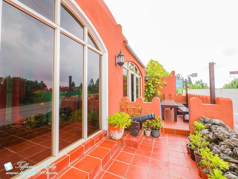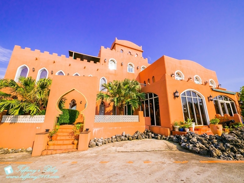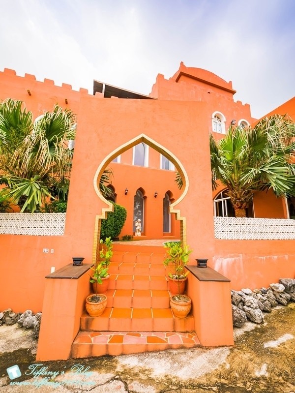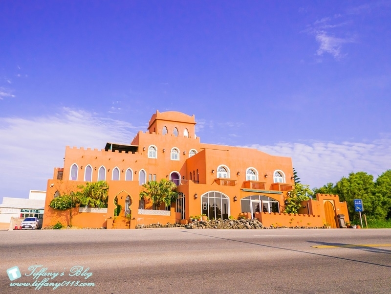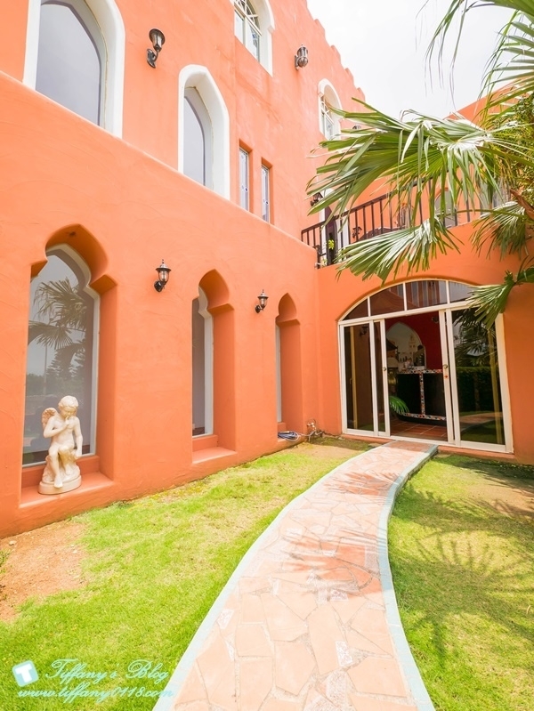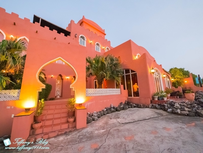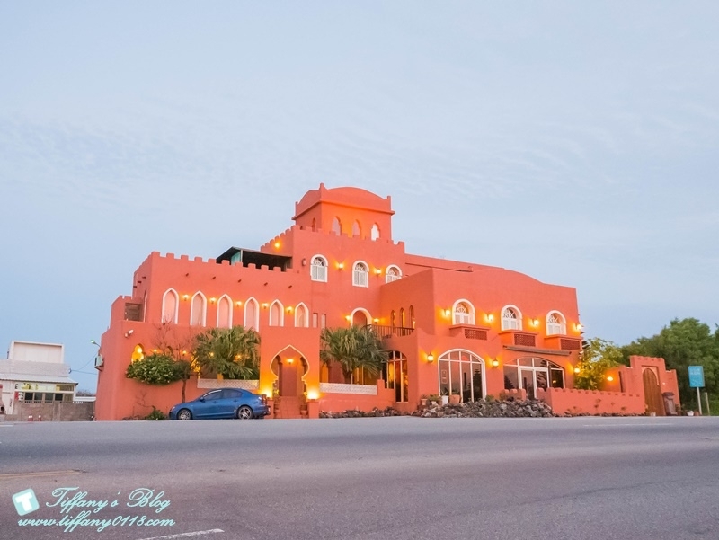 北非花園民宿光看外觀就很有異國風情,橘紅色的城堡式建築第一眼就吸引你的目光