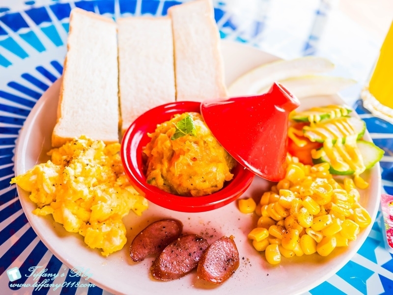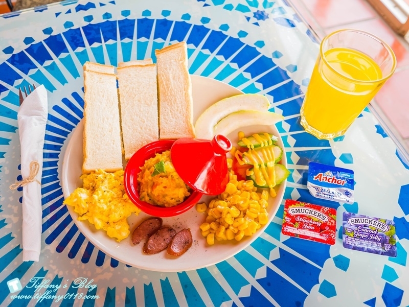 早餐的部分非常用心,除了有吐司~炒蛋~香腸~玉米~沙拉等,最主要是中間那個小塔吉鍋燉煮好幾個小時的摩洛哥菜,非常好吃!!!
