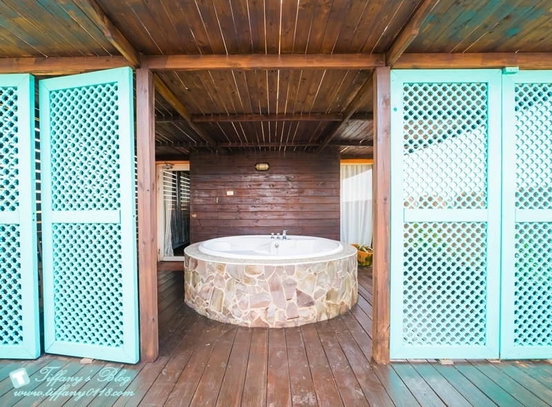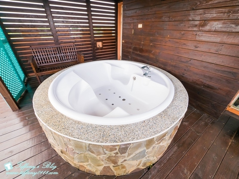 戶外空間超級大,視野非常好~傍晚的時候可以做在躺椅上欣賞夕陽,晚上的時候可以在露天浴缸裡泡澡看星星,感覺好幸福喔!!