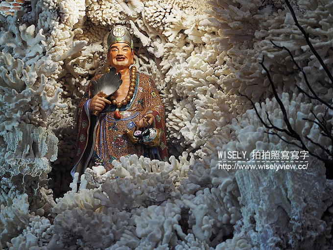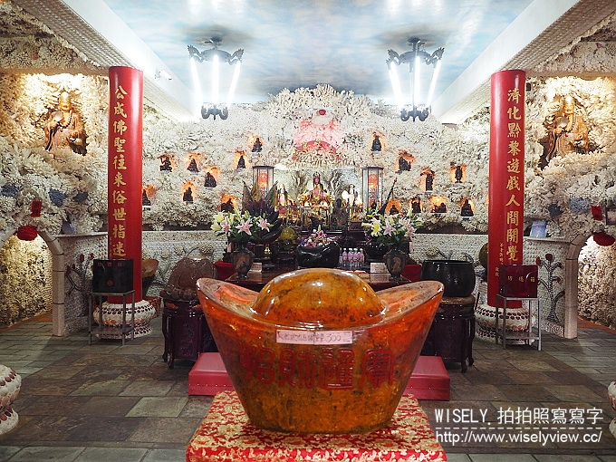 寺廟主要供奉的是濟公活佛,而最大的特點就是寺廟本身以珊瑚貝殼做裝飾,並且還有個小洞供遊客在參拜之後繞半圈,算是台灣比較少見的特色主題寺廟。