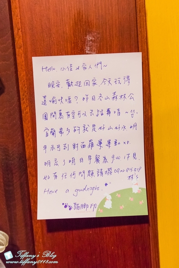 記得當天晚上我們去吃完晚餐回來後,看到房間門口貼了一張紙條,頓時覺得老闆娘真的很貼心也很窩心^^